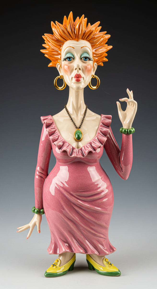 テキスト(日本語):陶芸作品のスタイルで、画像を生成してください.(妖艶な雰囲気を表現してください.釉薬の光沢を表現してください.)